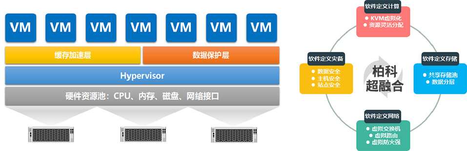 SE-RD Fusion超融合系統(tǒng)是一款以國(guó)產(chǎn)軟硬為基礎(chǔ),將柏科數(shù)據(jù)自主的分布式存儲(chǔ)系統(tǒng)和圖形化運(yùn)維管理系統(tǒng),融合KVM計(jì)算虛擬化技術(shù)和虛擬化網(wǎng)絡(luò)技術(shù),推出的計(jì)算、存儲(chǔ)、網(wǎng)絡(luò)一體化融合產(chǎn)品,并針對(duì)國(guó)產(chǎn)CPU硬件平臺(tái)的特性進(jìn)行整合和優(yōu)化,為用戶提供使用簡(jiǎn)便、可擴(kuò)展、經(jīng)濟(jì)的全國(guó)產(chǎn)化基礎(chǔ)IT資源支撐平臺(tái)。