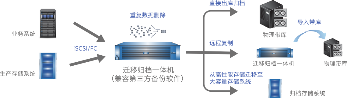 4、支持iSCSI和FC接口,大幅提升備份速度;
