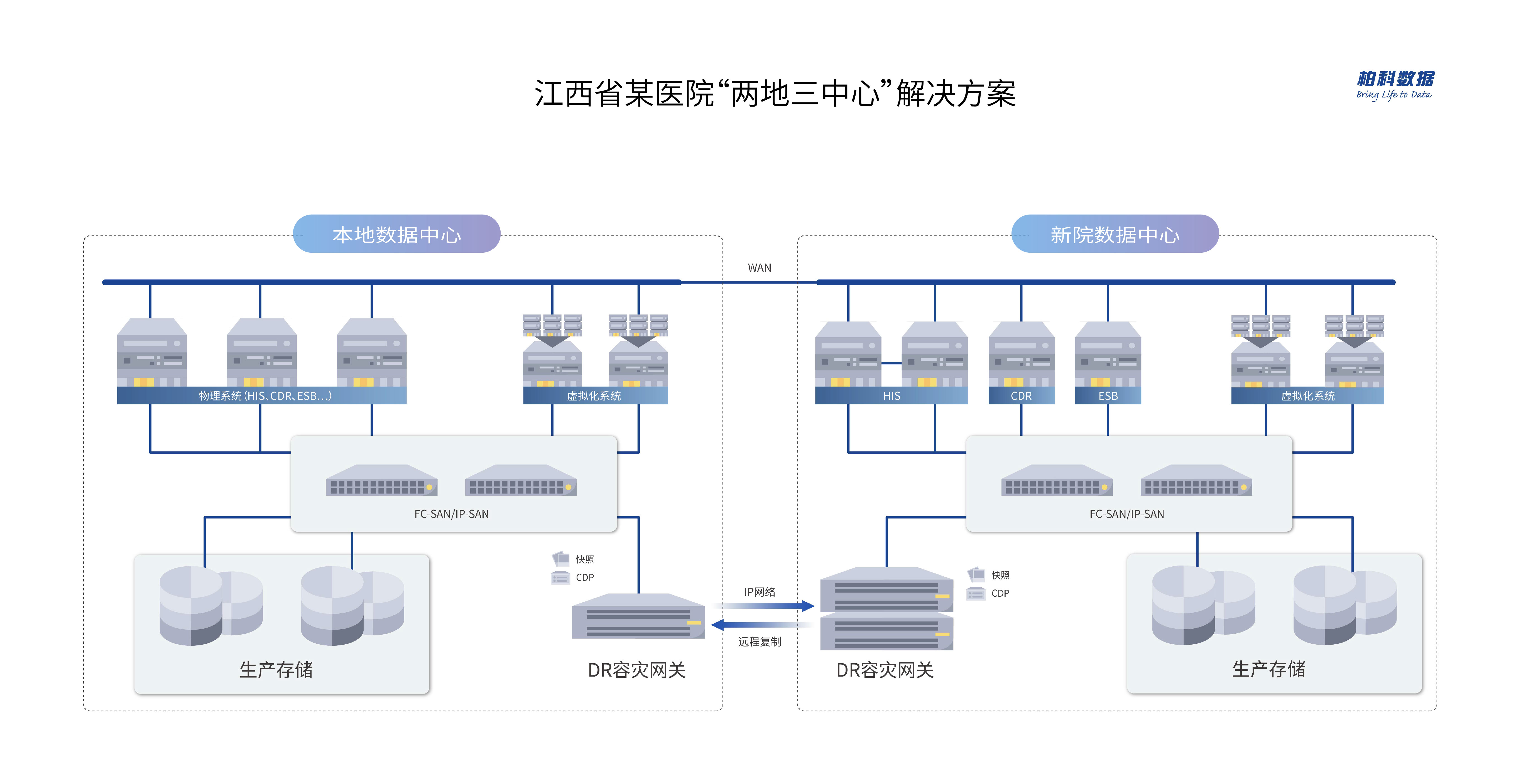 針對(duì)江西省某醫(yī)院的災(zāi)備需求及挑戰(zhàn),柏科數(shù)據(jù)技術(shù)(深圳)股份有限公司提供了從咨詢(xún)、方案設(shè)計(jì)、建設(shè)到運(yùn)營(yíng)端到端的一系列服務(wù),通過(guò)在老院、新院中部署多套DR容災(zāi)網(wǎng)關(guān)系統(tǒng),建設(shè)高性能的數(shù)據(jù)安全管理中心,實(shí)現(xiàn)了醫(yī)療信息系統(tǒng)高速運(yùn)轉(zhuǎn),維護(hù)了醫(yī)院核心數(shù)據(jù)系統(tǒng)安全,并同時(shí)滿(mǎn)足了互聯(lián)互通測(cè)評(píng)四級(jí)甲等、五級(jí)乙等標(biāo)準(zhǔn)。